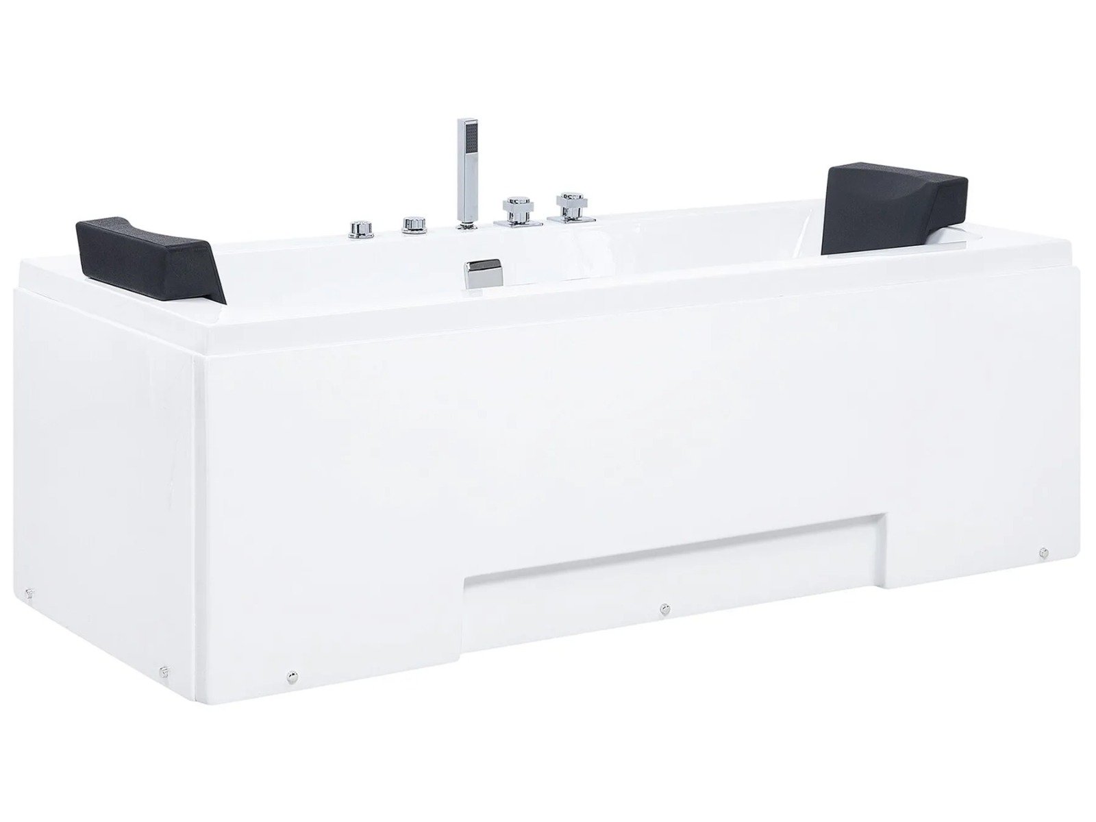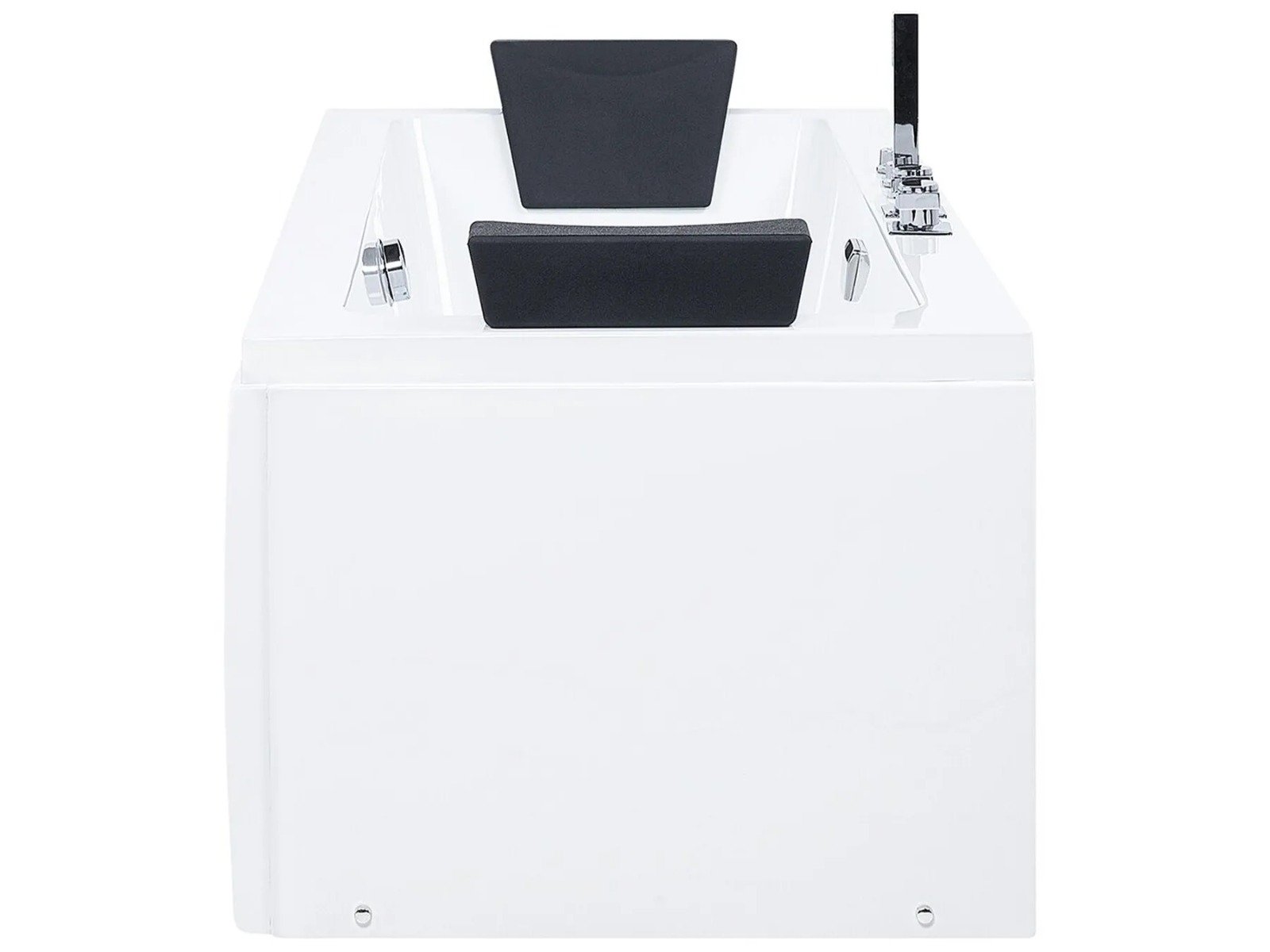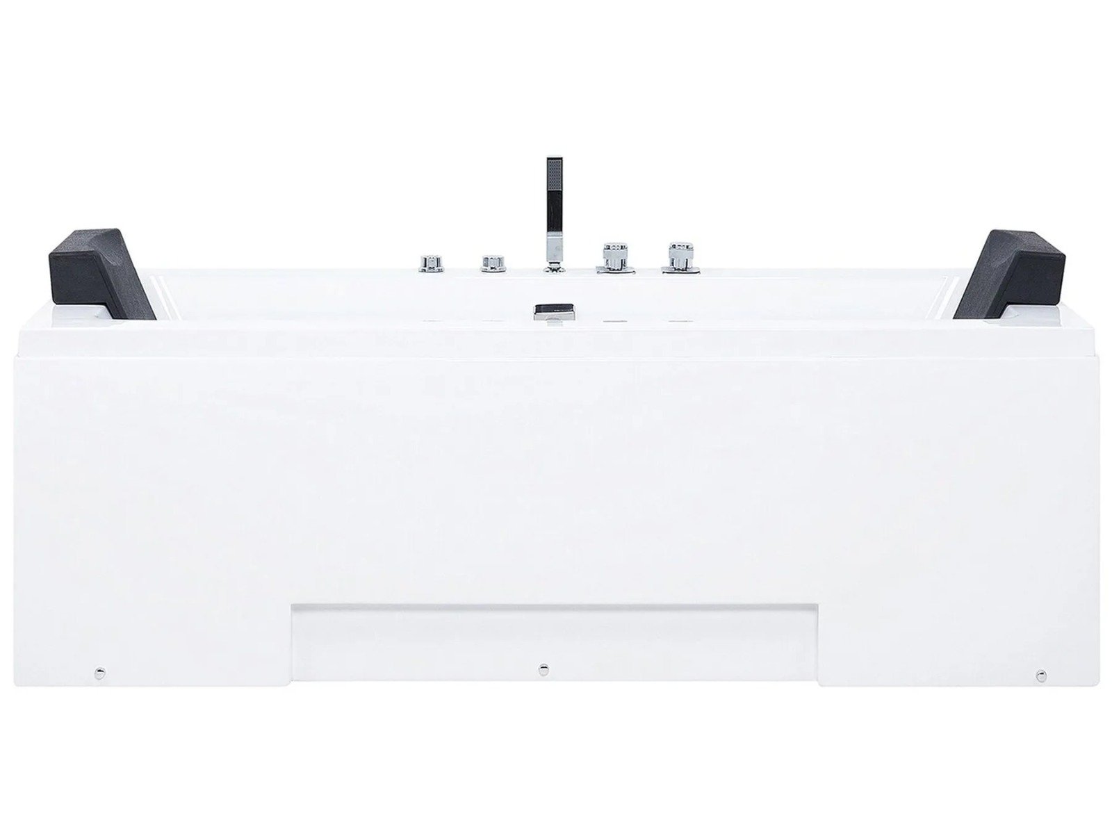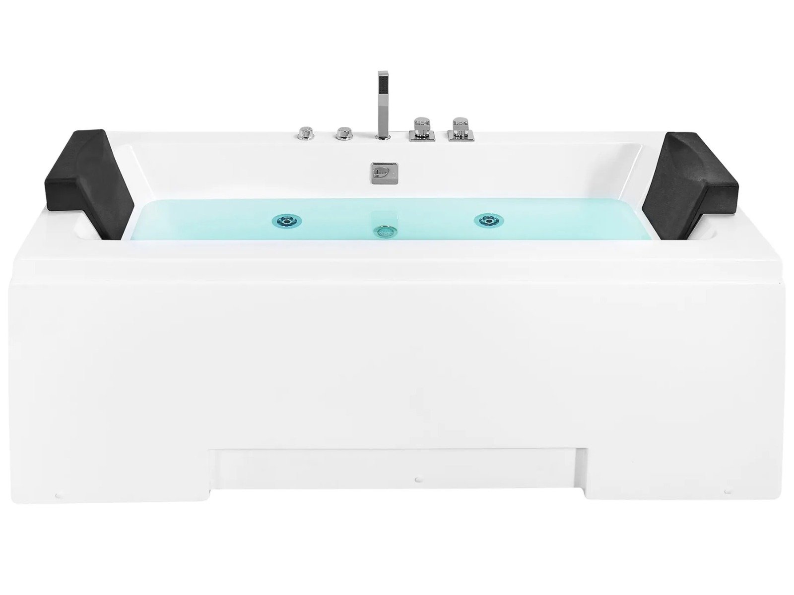 Esta bañera, de líneas limpias y diseño rectangular, encaja perfectamente en cualquier baño contemporáneo. Ofrece un equilibrio ideal entre estética y confort. Diseñada para dos personas, incluye reposacabezas de polipiel a cada lado y grifería central, lo que permite disfrutar de un baño relajante en pareja.