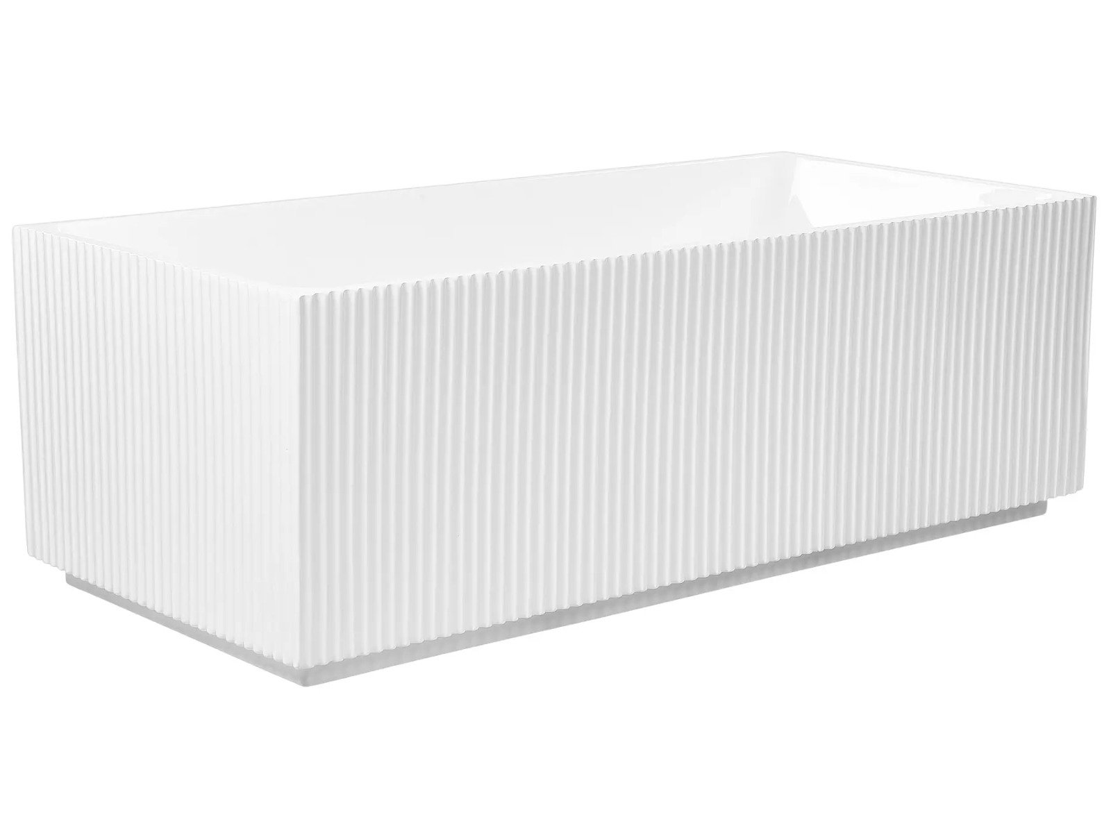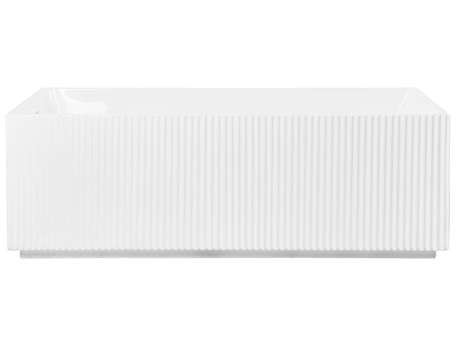 Entra en un mundo de lujo y diseño con esta elegante bañera de acabado blanco mate. Este innovador modelo, diseñado para dos, combina a la perfección confort y estilo. Su exterior liso y su superficie texturizada con acanaladuras le dan un toque de sofisticación que te invita a la relajación.