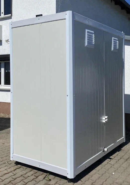 Este contenedor sanitario es una solución ideal para espacios que requieren instalaciones de ducha funcionales y eficientes. Con su diseño compacto y robusto, es perfecto para obras, gimnasios, campamentos o eventos, proporcionando un servicio esencial de forma rápida y sencilla.