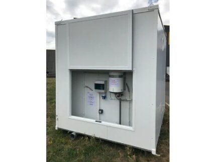 El módulo está dividido en dos cabinas independientes, cada una con su propia puerta en una de las paredes largas, garantizando privacidad para los usuarios. Su tamaño fac Consulta la descripción para más información.