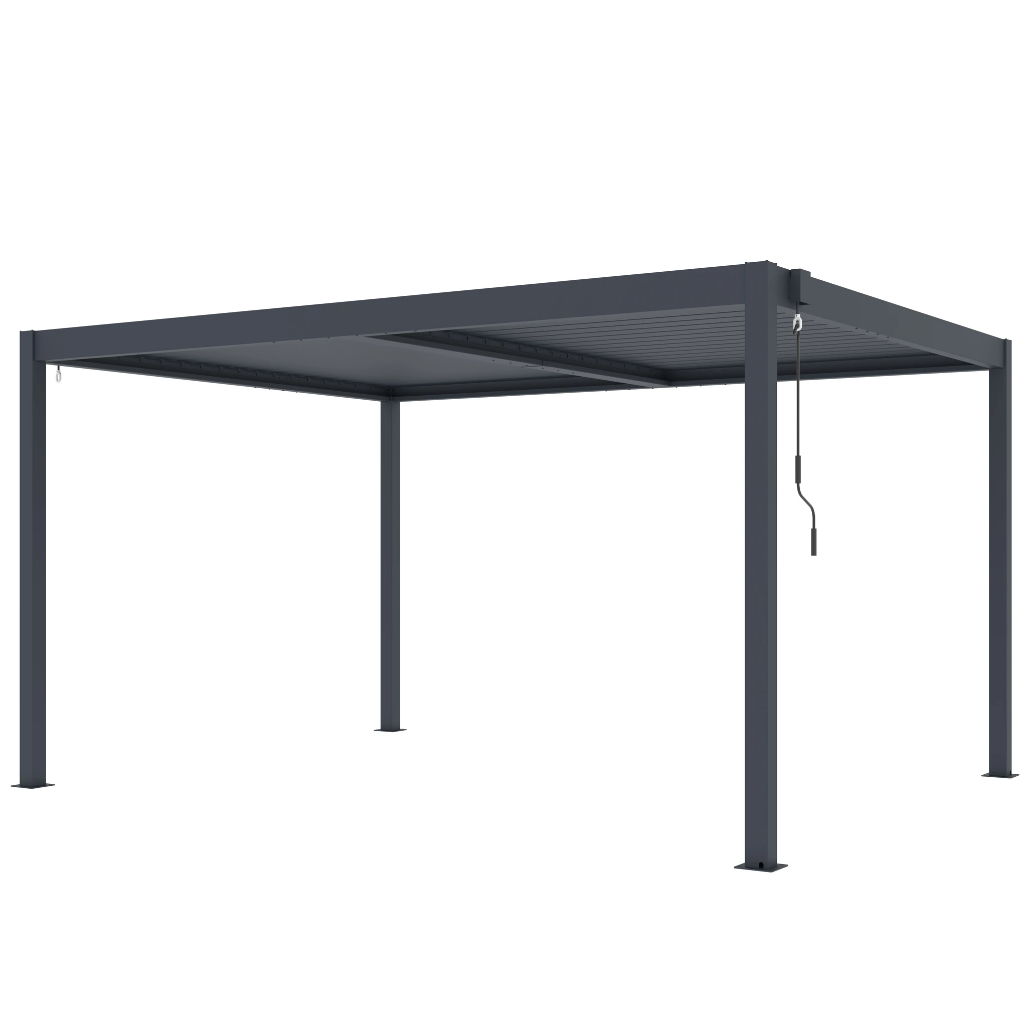 Una de sus principales funciones es su techo ajustable, que permite controlar la cantidad de sombra y ventilación. Las lamas pueden rotar de 0° a 110° mediante una manivela, brindándole flexibilidad para dejar entrar tanta o tan poca luz solar como desee. Esta pérgola está diseñada con un sistema de drenaje de flujo libre, por lo tanto, no pasará el agua cuando el techo esté cerrado (totalmente impermeable).