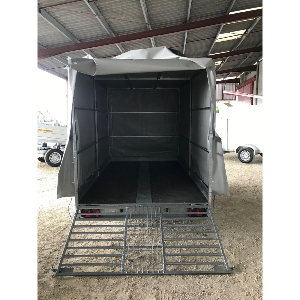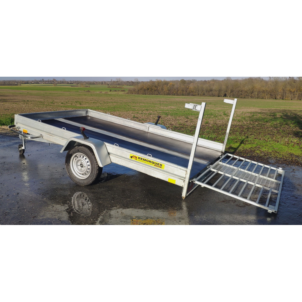 Este remolque también permite transportar y proteger equipos (moto, tractor, quad, etc.) bajo una lona.