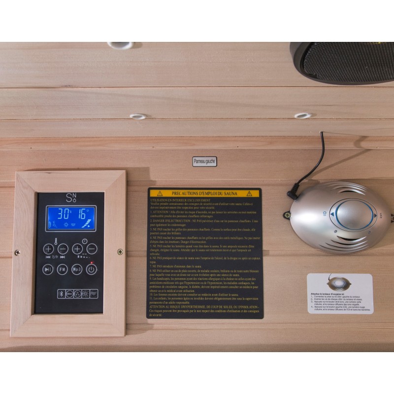 La sauna de infrarrojos aparece en la década de 1950 en Japón como una alternativa a la sauna tradicional. Combina las tecnologías modernas con las tradiciones finlandesas y rápidamente ocupa un lugar importante en el mercado mundial. Con este modelo de sauna para dos o tres personas de la marca SNÖ, podrás equipar un rincón de relajación en el interior de tu hogar. Equipado con un panel de control (interior y exterior) con múltiples funciones, existe la posibilidad de regular la temperatura fácilmente. Gracias al sistema bluetooth, puedes escuchar tu música favorita directamente desde tu smartphone mientras te relajas.