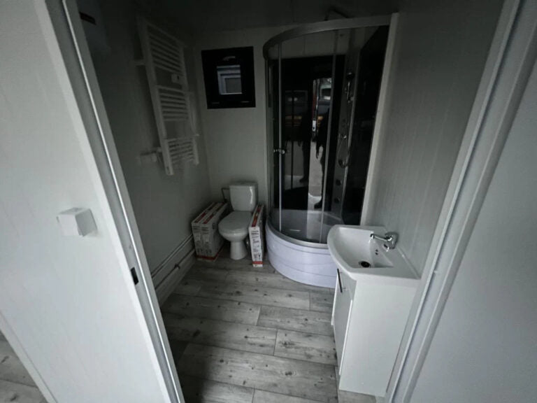 – Inodoro, ducha de lujo y lavabo/mueble
